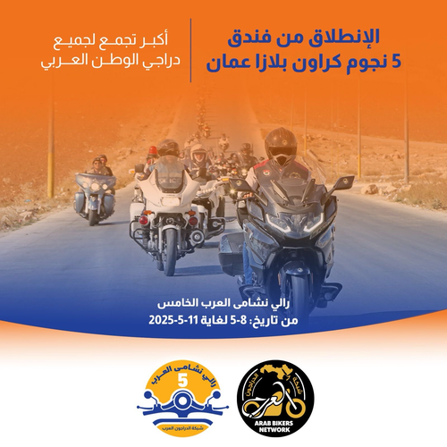 بعنوان شارك في أضخم رالي على مستوى الوطن العربي أعلن المنظمون في شبكة الدراجون العرب برنامج رالي شبكة الدراجون العرب الخامس والذي تم تحديده في الفترة من 8 مايو حتى 11 مايو 2025 في المملكة الاردنية. علما بانه التجمع يمتاز بالمناظر الجميله والاجواء الرائعة جدا.